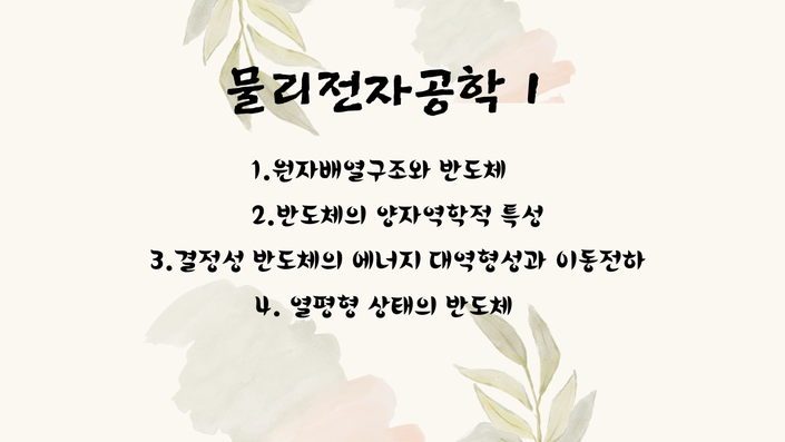 물리전자공학 1,2와 반도체공학 1,2를 묶어놓은 강좌입니다